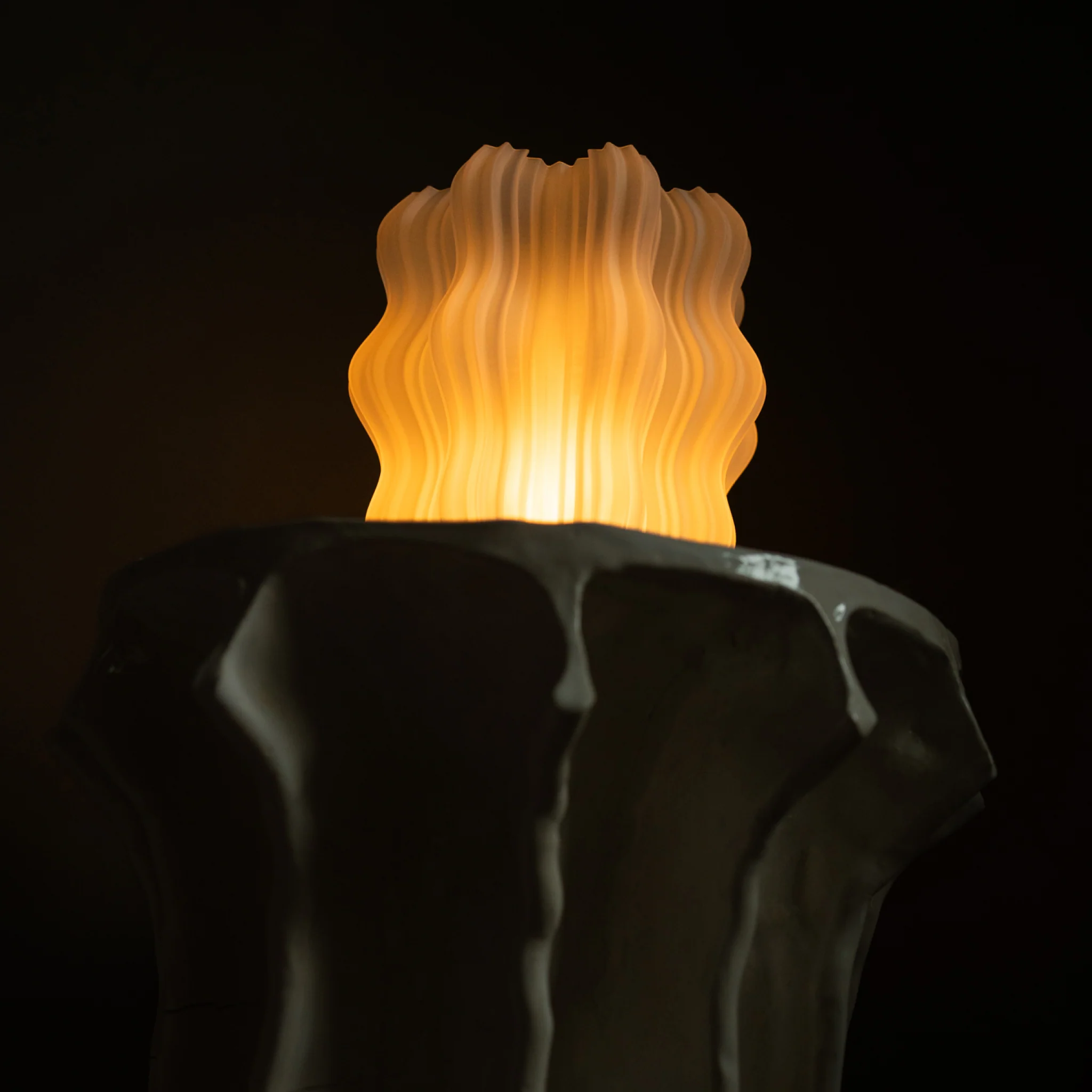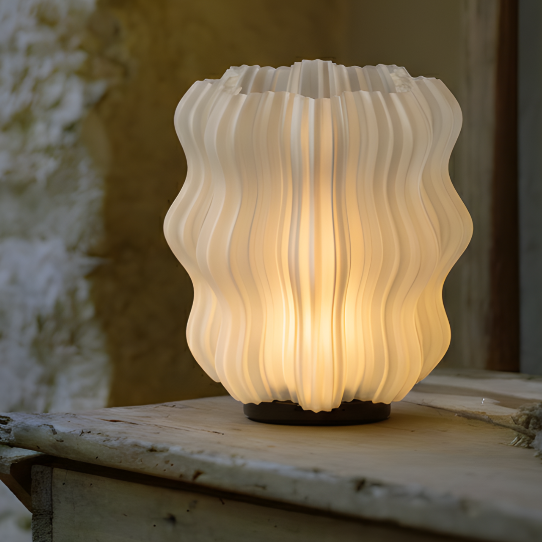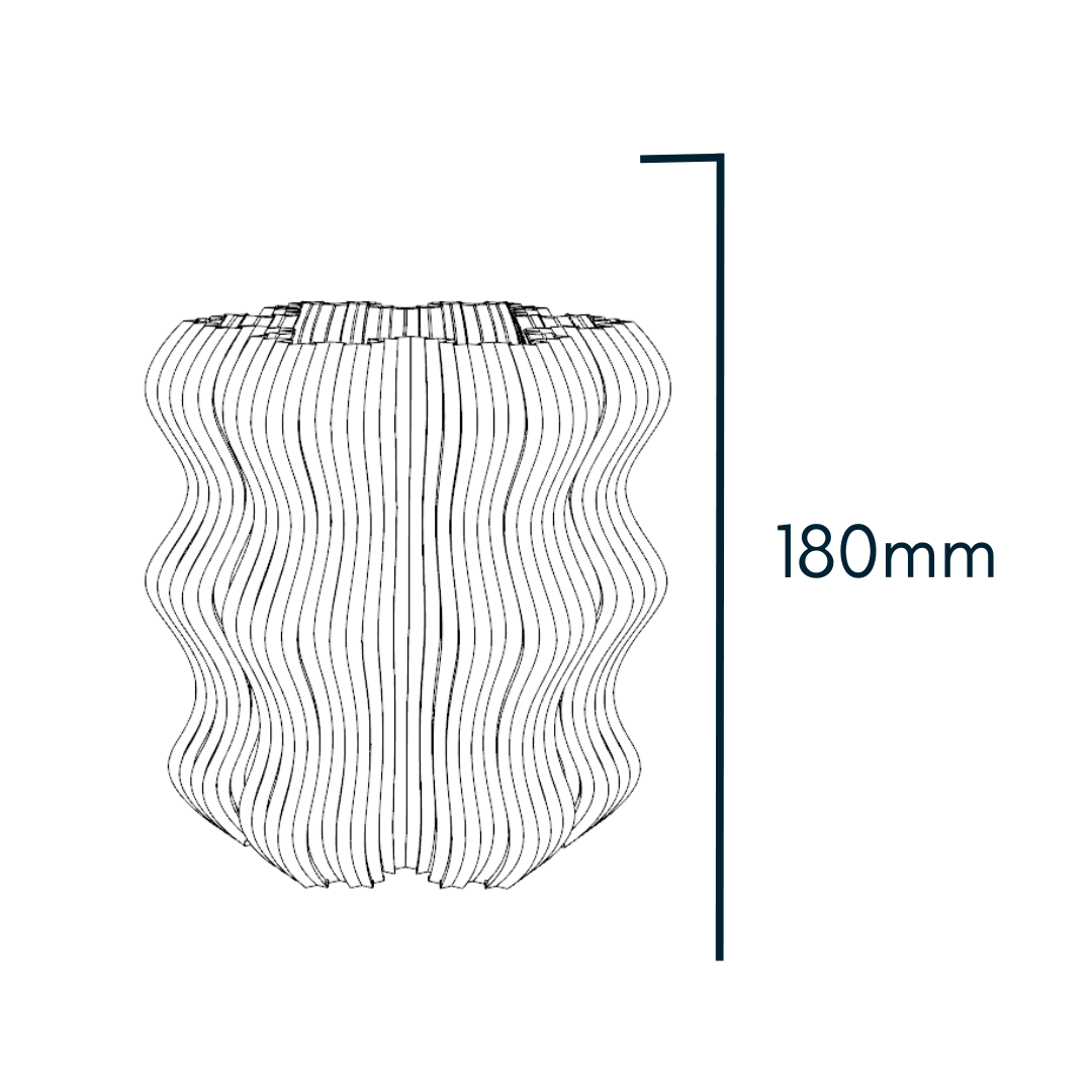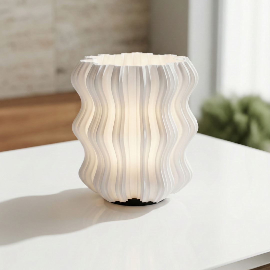 La lámpara Koshy es una pieza de iluminación técnica fabricada mediante impresión 3D de alta precisión, cuyo diseño se caracteriza por una superficie profundamente texturizada con una superficie de líneas onduladas. Esta textura única permite que la luz cálida se filtre de manera uniforme, resaltando las capas de fabricación y creando un juego de sombras suave que transforma la atmósfera en un refugio de serenidad.